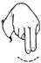 На ћирилици написано РАДОВАН ГАРОЊА састоји се из 13 слова [?]. Исписано ћириличном једноручном азбуком за глувонеме: